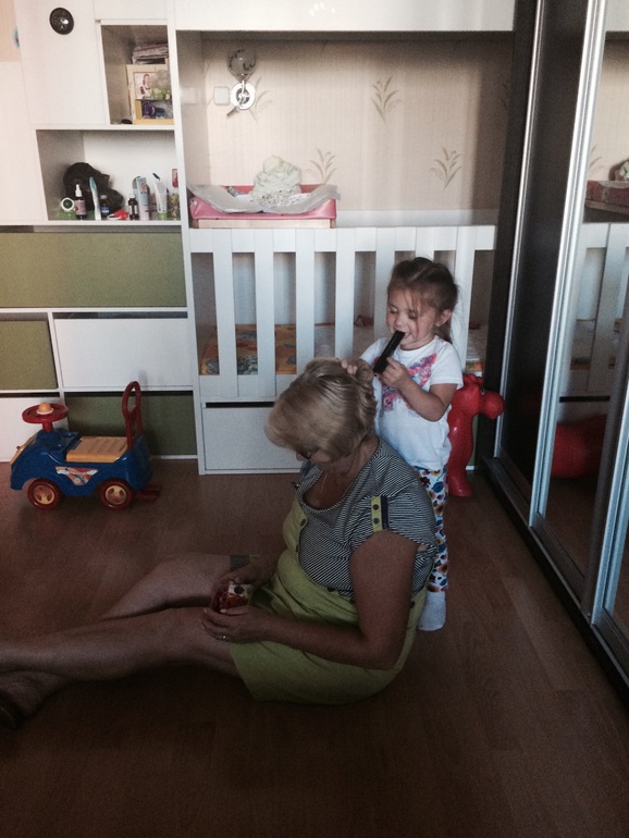 Наводит бабушке марафет