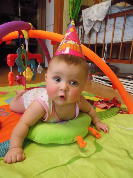 Кажется только вчера я прижала к себе маленькое тельце (49 см при рождении) и с удивлением смотрела на припухшее личико и не верила, что она моя. И вот уже эта красотка все больше становится похожа на папу (а я ведь восемь часов мучалась), кстати характером тоже... такая же упертая)))))
