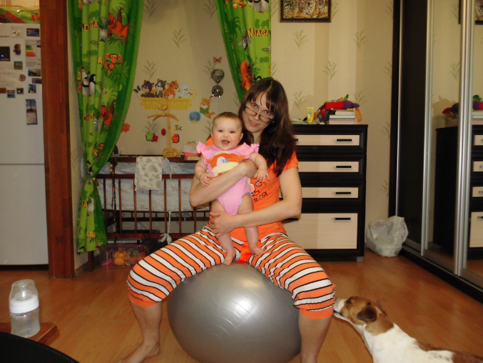 Просмотрела кучу роликов, как с детишками заниматься, да и для себя тоже... И хотя в нашем возрасте упражнений не так много, мы все равно с рвением принялись фитболиться)))