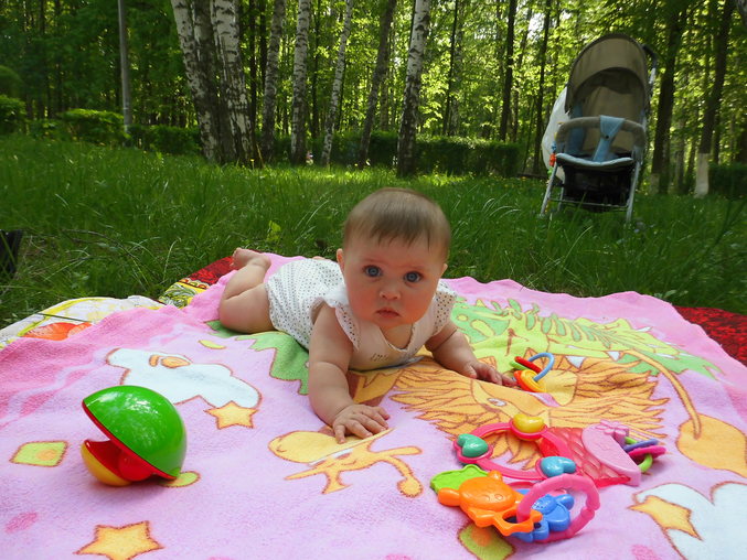 Вот и дождались мы активных переворотов)))) теперь в коляске лежать спокойно мы не хотим и смотреть на небо и деревья нас не устраивает. час Настена спит, набирается сил.... а потом... переворачивается и пытается ползти.. но...ограниченное пространство диктует свои условия)))))) и тогда дочь после пятнадцатиминутных попыток начинает скандал...)))))