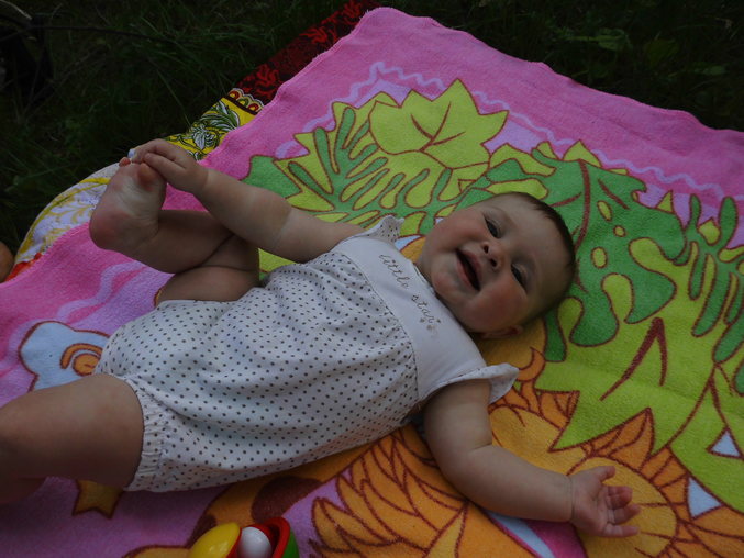 Настене очень понравилось "ходить " голыми ножками по травке, прям визжала от восторга))))