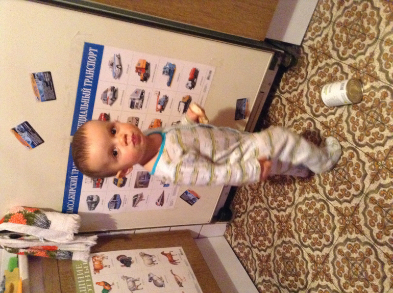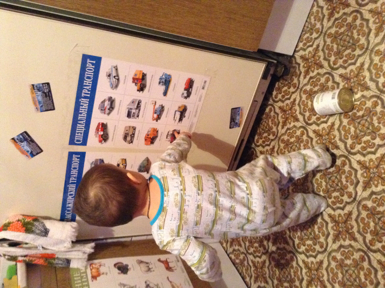 Играем в прятки; я накладываю магнит сверху картинки; "де?" Спрашивает, магнит убирает