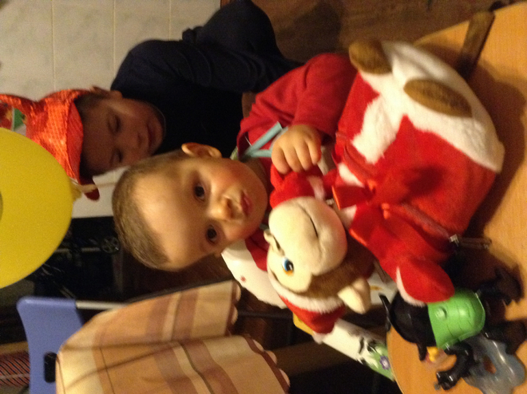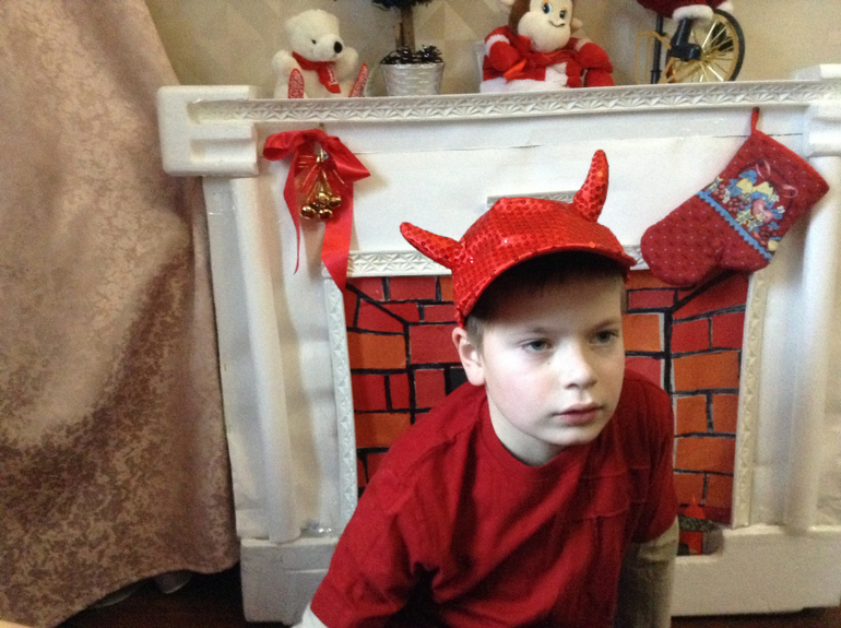 накрыли небольшой столик, сделали торт из вафельных листов, камин, после 12 вышли к елке, вручила теме небольшой подарок и все