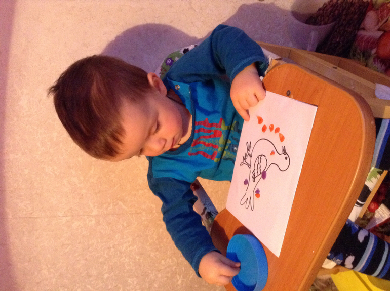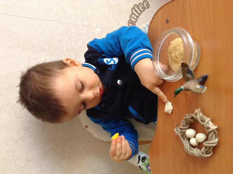 Кормили зернышками из пластилина нарисованную птицу и утку рисом