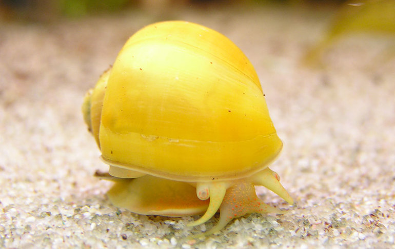 еще какая-то маленькая желтая рыбка, которая чудно уживается со всеми остальными) и штук 5-7 крупных желтых улиток-ампулярий.