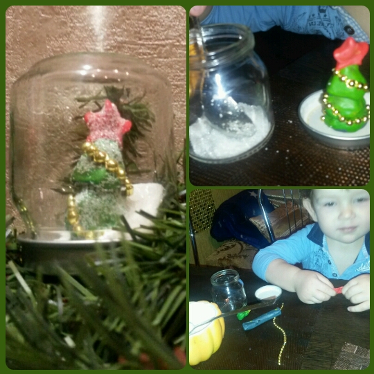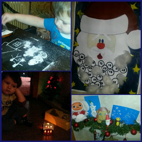 Очень ,очень ждем Новый год))) погода нас не радуем,создаем настроение сами.Смастерили чудо ёлочку со снегом в банке, фактурные картинки,сынок очень вдохновился поэтому по каждому заданию делаем сразу несколько поделок -получились обезьянка и дед мороз из втулок и еще много чего и еще много ждет впереди. А бородушка у дедушки тем временем всё гуще и гуще.