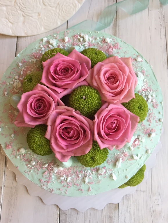 Торты, капкейки и другие кондитерские изделияС хобби на этой неделе не густо, только один тортик для нежной девушки, в любимых оттенках этого лета. Внутри все очень воздушно с легкой кислинкой в виде красной смородины.