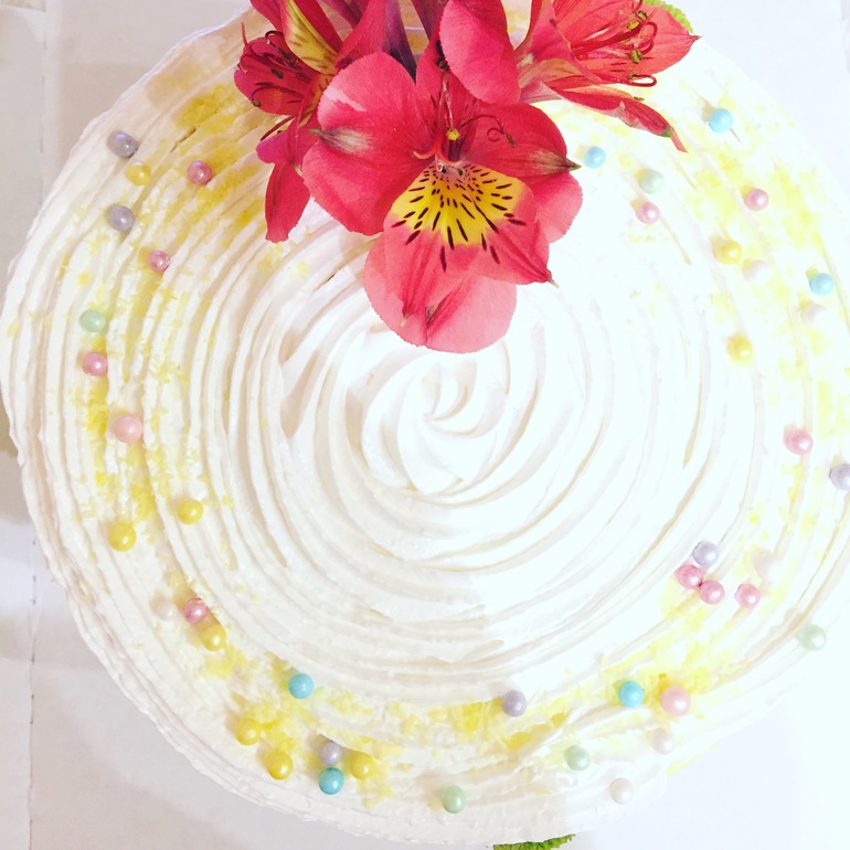 2,7 кг ванильный бисквит и сырно-сливочный крем, живые цветы