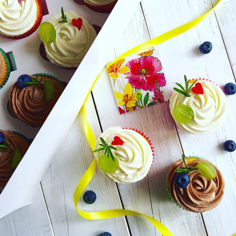 Морковные капкейки с начинкой из домашней карамели с нежным сырным и шоколадным кремом в подарок