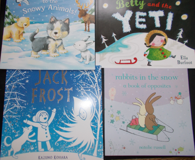 The Gruffalo's Child, Foxes in the snow, Charlie Crow in the snow, Big Bear Little Brother, Bella Gets Her skates on, Say Hello to the Snowy Animals, Rabbits in the Snow, Jack Frost, Betty and the Yeti, Sam's Snowflake.