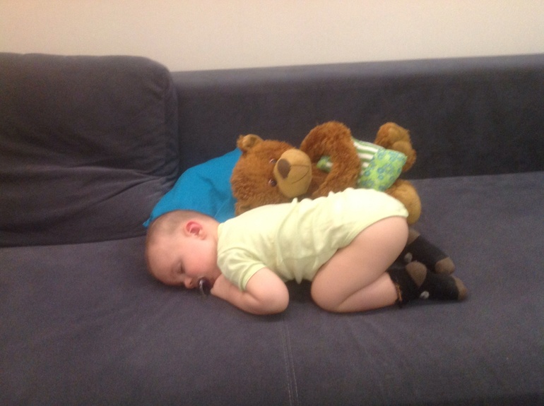 Сегодня бедняга уснул в зале на диване, в первый раз, видимо совсем плохо малышу