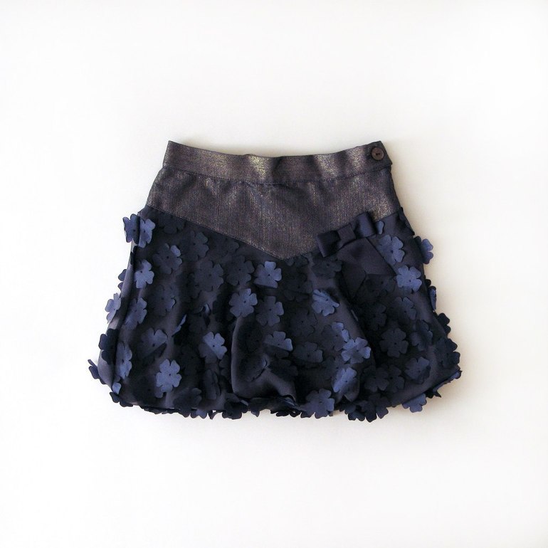 19. Очень классная, нарядная юбка-баллон, верх - хлопковая ткань с блеском, низ - шифон с пришитыми цветочками, на хлопковой подкладке, на поясе - утяжка, размеры: 3-4 года (104 см), 4-5 лет (110 см), 5-6 лет (116 см). Цена: 950 р