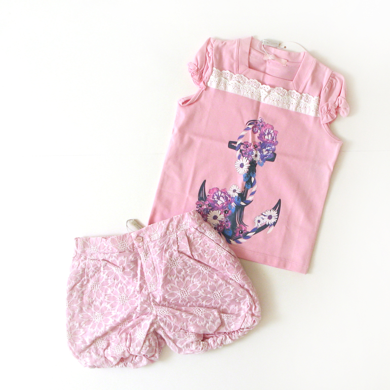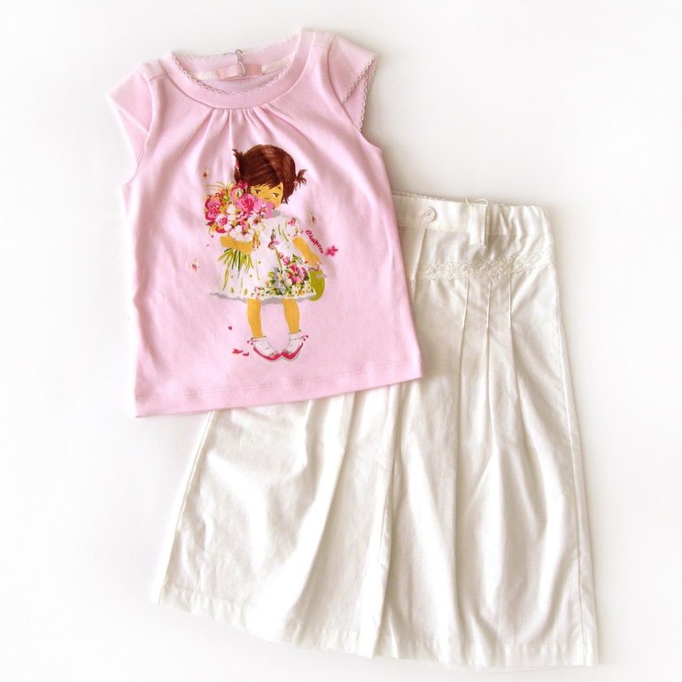 11. Симпатичные шортики-баллон и футболочка, украшенная принтом и шитьем на 3-4 года (104 см). Цена: шорты - 620 р, топ - 470 р