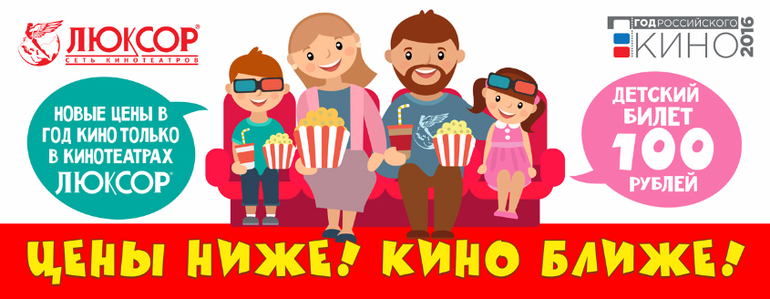 Сеть кинотеатров «Люксор» стремится сделать так, чтобы поход в кино оставался для каждого москвича доступным. В трёх кинотеатрах сети, располагающихся в ТРК «Золотой Вавилон»: «Люксор Центр» на проспекте Мира, «Люксор Отрадное», «Люксор Ясенево», а также в ТРЦ «ГУДЗОН» - с марта действуют сниженные цены на билеты как в рабочие, так и в выходные дни. Стоимость билета в сети ТРК «Золотой Вавилон» и ТРЦ «ГУДЗОН» для детей до 12 лет на дневные сеансы составляет 100 рублей. Также в сети ТРК «Золотой Вавилон» действуют новые условия на билеты для взрослых: на вечерний сеанс в будний день все желающие смогут сходить на понравившийся фильм всего за 250 рублей.