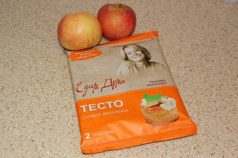 Слоеное тесто, яблоки, сахарная пудра, вода. Идею подсказал интернет ;)