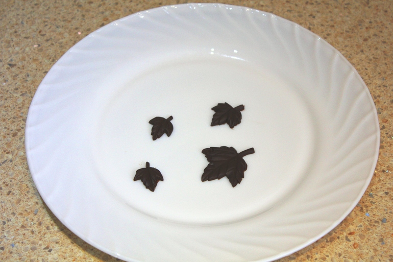 Застывшие листочки вынуть из формы и украсить ими тортик