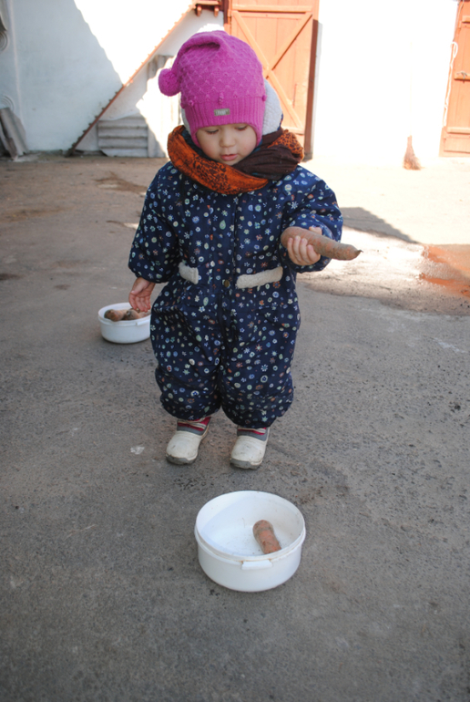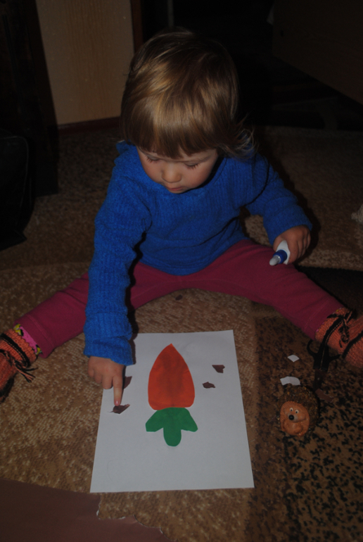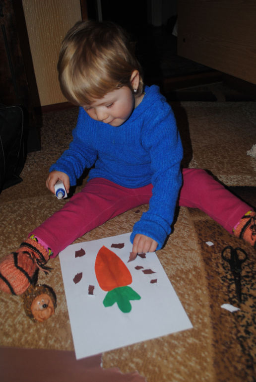 А вечером зделали для бабушки апликацию морковку,старалась все делать сама.