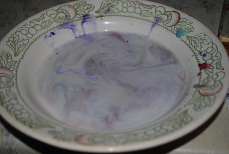 Потом мы еще порисовали штампиками,Полечке очень понравилось,даже на молоке порисовали)