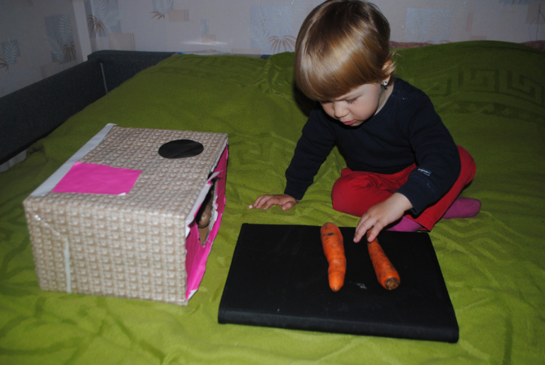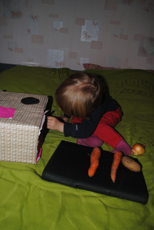 Потом поиграли в волшебную коробочку,доставали от туда то,что мама просила,правда не всегда удачно!!!