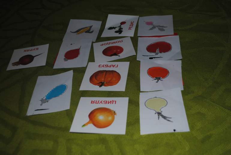 Начали традиционно с тематических картинок и овощей.Посмотрели,потрогали,назвали все