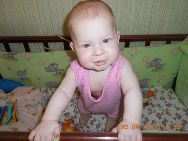 27.11.2012. ходили на 3-й здоровый приём. Вес 5900, рост 59. Сказала врач, что ножки развиты хорошо, а на ручках ещё немного тонус (кулачки держит). (Но мы делаем зарядку и массажики). Сказали учить переворачиваться. Пришли результаты анализов крови, низкий гемоглобин. Сказали начинать давать фруктовое пюре.