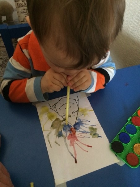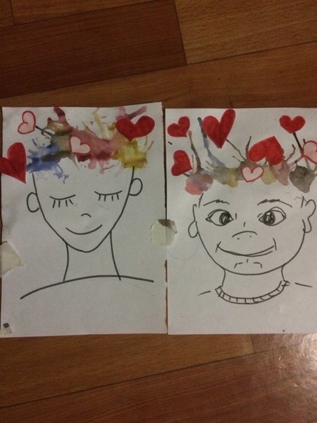 еще вот такую замечательную идею воплотили в жизнь, акварель, вода, рисунки человеческих лиц, сердечки, клей, трубочки