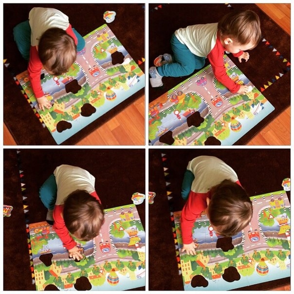 пазлы Кире нравятся, вот эти что попроще он собиает за 6 минут все четыре штуки, Юра как-то ради интереса засекал время