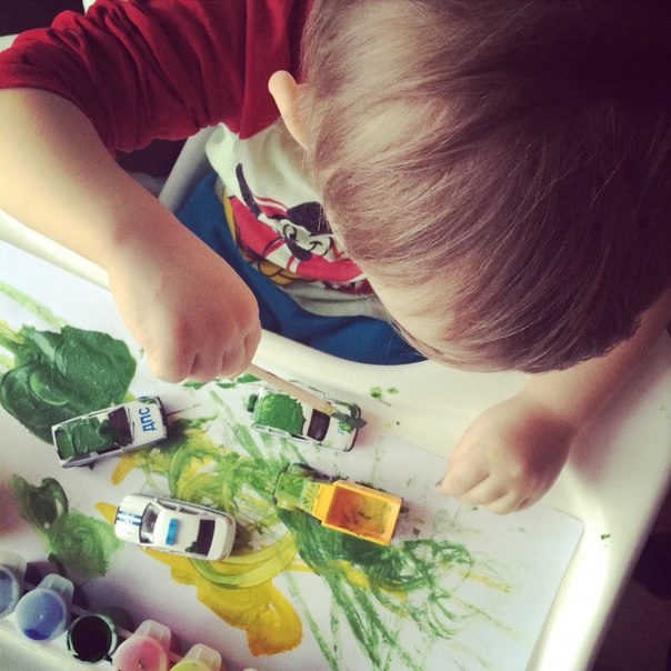 В сюжетные игры играем вместе, один может игать в лего, маленькие машинки, паравозики.