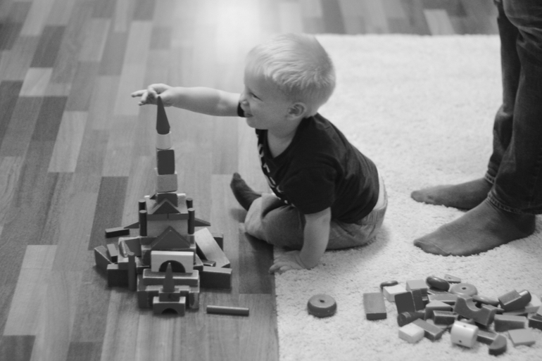 Игрушки его не сильно интересуют. У нас их не много, я их часто меняю, на каждой полке в его стеллаже получается по одной игре или теме. Икеевские гвоздики забивать молотком ему надоело, теперь он задвигает их пальцами. Еще уважает колокольчики и ксилофон. Раз уж про музыку, то напишу сразу, что у нас есть пианино, Аркадий его умеет открывать самостоятельно, включать и играть. Делает это часто, по несколько раз на дню. Из игр у нас вчера появился бизиборд, на котором замочки всякие - Аркадий умеет все открывать, кроме тех, что с ключами - они очень маленькие и ему пока сложно попасть ключиком в маленькую замочную скважину. Зато очень ооочень интересуется моделями на радио управлении - машины и вертолеты - по работе мужа они часто оказываются всякие у нас дома, Аркадий от них не отходит и готов чуть ли не спать с ними. Маленькой отверткой мужа их разбирает))