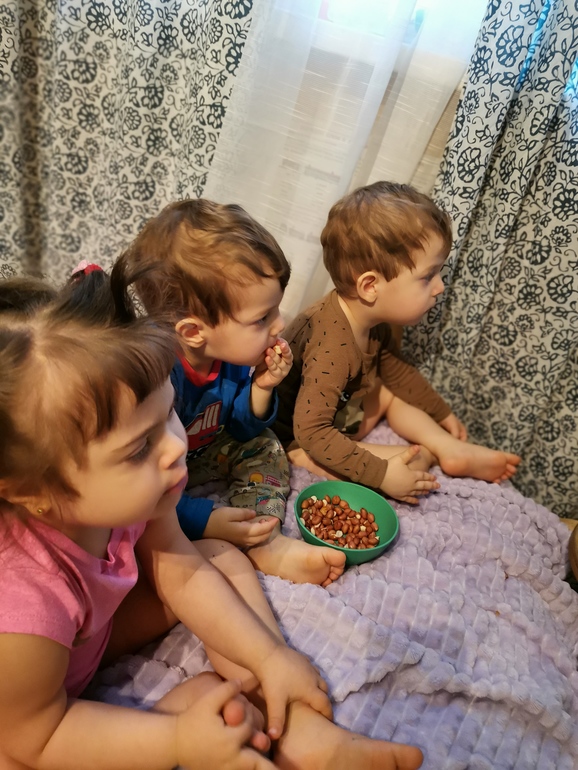 Спортпрограмма тоже дома вместе с мальчиками. Скучает по балету. Крутит фуэте свое и мерит пачки😭. Но пока нет физической возможности, далеко.
