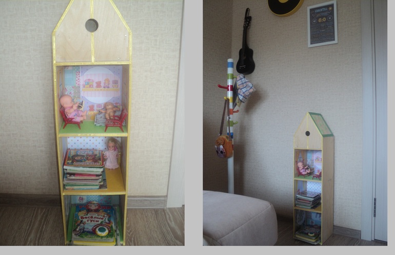 Домик чаще используется как стелаж.На двух полочках книжки Полинки,а на верхнем этаже комнатка.Очень удобно) Сама наводит там порядки,копошится...