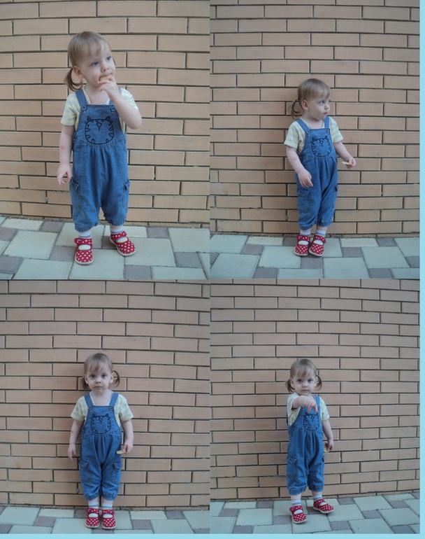 Аппетит у Полинки отличный,настроение доброе и шкодное. Любит играть на площадке около дома- качели,горочку,кататься на самокате.