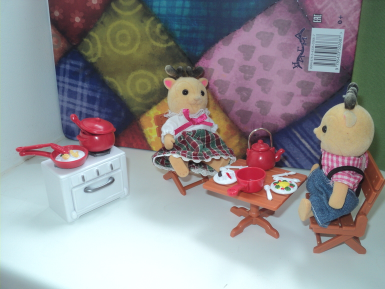 Один из недавних подарков - мини кухня. Может по долгу копошиться с мелочевкой.