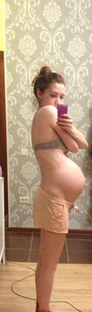 Это где-то 34-35 неделя. Тут правда не особо видно, но живот у меня забавно смотрится. Я во многой одежде себя чувствую как змея проглотившая слона.)) Рёбра у меня конечно не торчат, но это я сама по себе такая не тощая и до беременности была.)
