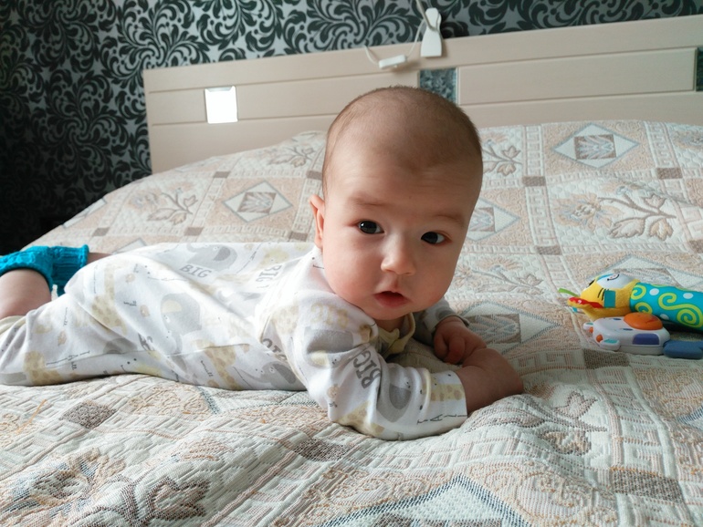 Ну вот только к трем месяцам стал побольше бодрствовать, иногда даже может не поспать между кормлениями. Когда не спит, он любит залипать в мобиль, болтает, улыбается и между делом научился переворачиваться со спины на живот и обратно. Орет только по делу - когда бесят рыбы на мобиле или кушать/спать очень хочется. А еще с ним можно спокойно ходить гулять, представляете? Можно его положить в коляску и пойти, а он заснет. Чудеса! ))