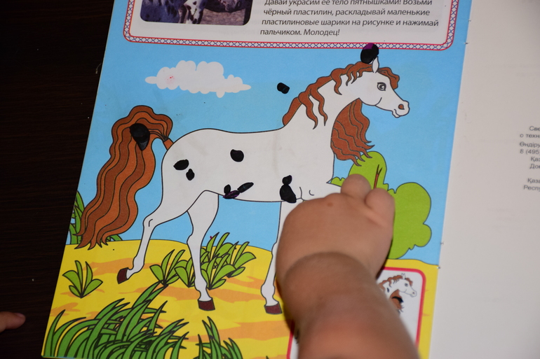 М. немного по раскрашивала карандашами лошадь,красками рисовать отказалась.Аппликация тоже не пошла.