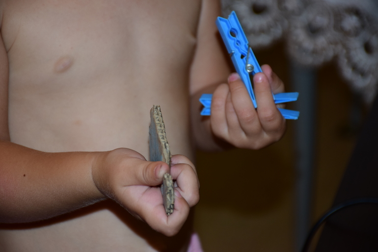 Утро Маши началось с сенсорной коробочки.Сделала маленькую,на случай если вдруг Маша решит по разбрасывать всё вокруг)