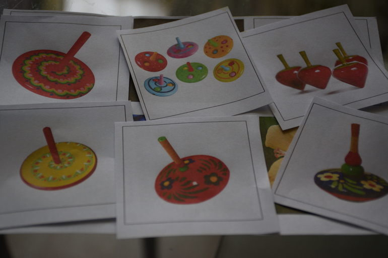 Потом М. собирала пазл, искала пару к волчкам и находила персонажей на страничках.