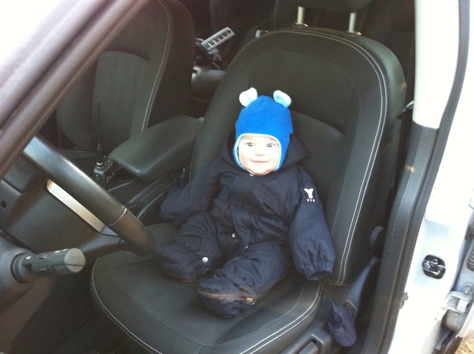Ездили в сосновый лес. Дышали воздухом, побродили с Максом на руках.:) Макс всё внимательно рассматривал, "говорил" на своём языке. В общем было здорово. А потом посадили его за руль в машине. Ребёнок был доволен.