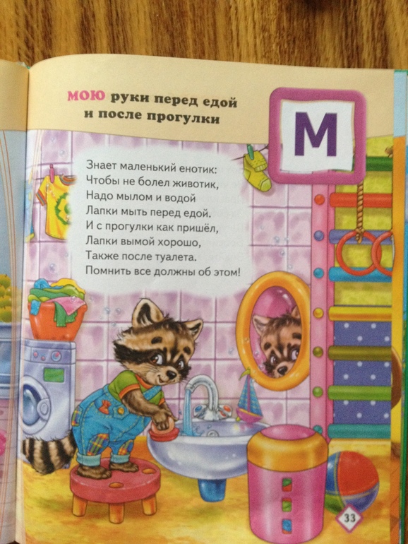 Случилось вот какое дело, Злата выучила весь алфавит. У меня не было такой цели, просто бабушка подарила нам книжку со стишками, книжка классная, там правила поведения и безопасности в стихах и с картинками, а на каждой страничке буква. Вот так это выглядит: