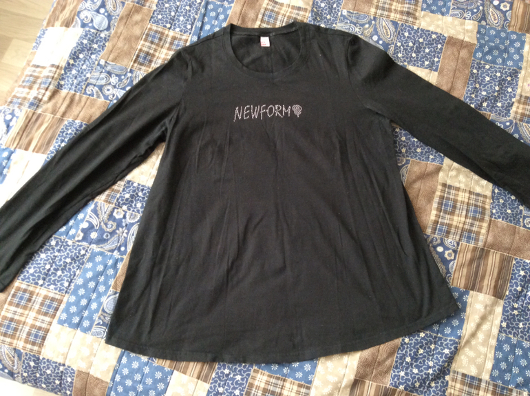 Обменяю кофту для беременных, размер 48-50. Чёрная. Надпись стразами. Длинный рукав. Фирма нью форм. Состояние отличное. Одевала 2 раза. Экв.500 руб.