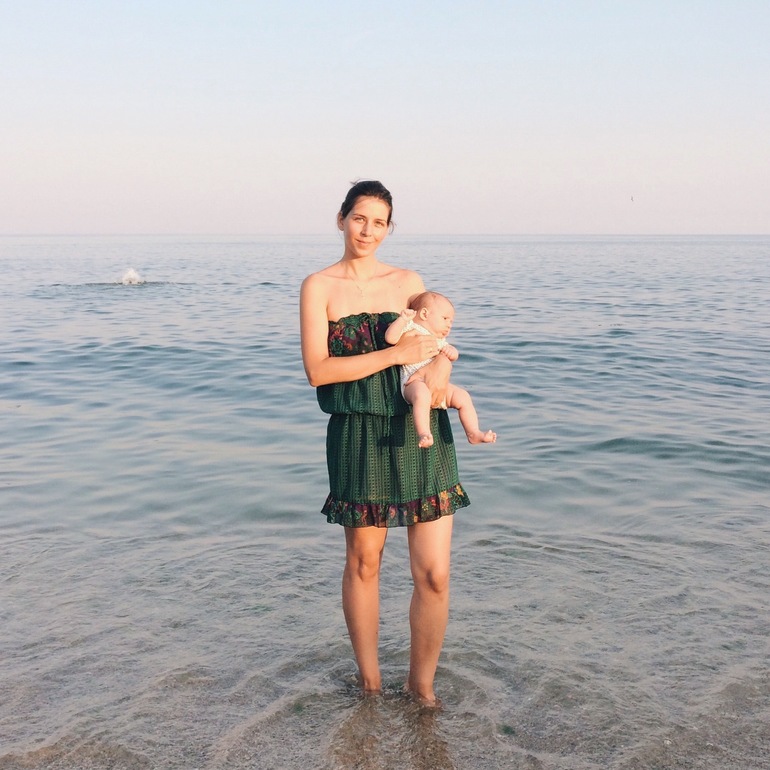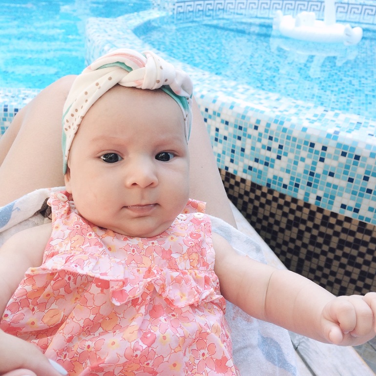 НастенькаНе доходят руки у меня до Бб, а хотелось бы делать записи чаще! А тем временем Настюше 28 августа исполнилось 3 месяца! Наше лето было насыщенным, мы съездили на 2 недели на море под Одессу всей семьёй, на несколько дней на дачу к друзьям, и вообще каждые выходные куда-то выбирались.Отдохнули замечательно, как же все-таки легко с двухмесячным малышом, кормить и носить на ручках - все что ей нужно) и Миша уже взрослый, дорогу осилил легко. Ехали ночным поездом 9 часов плюс электричка 2 часа. Миша был в восторге от моря, купался дважды в день плюс днём в бассейне на территории отеля. Настя днём практически не спала, было очень жарко, но не капризничала, очень любит изучать мир находясь на ручках.