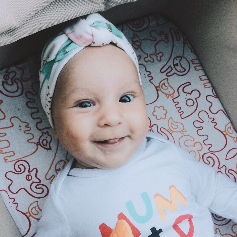 Последнюю неделю жара спала и Настя стала лучше спать днём, но дома никак не выходит, только на улице в коляске либо в слинге. Миша вроде засыпал на груди и мог час проспать днём на нашей кровати, Настя минут 5 максимум. Ночью спит первые 2-3 часа в своей люльке, удаётся переложить когда засыпает после кормления, дальше забираю к нам, ест когда хочет, я не считаю сколько раз) утром ждёт пока я досплю часов до 8, ну точнее висит на груди) Миша с месяца спал уже с нами полностью всю ночь, переложить было нереально!