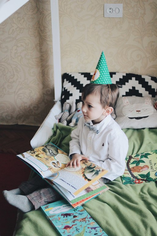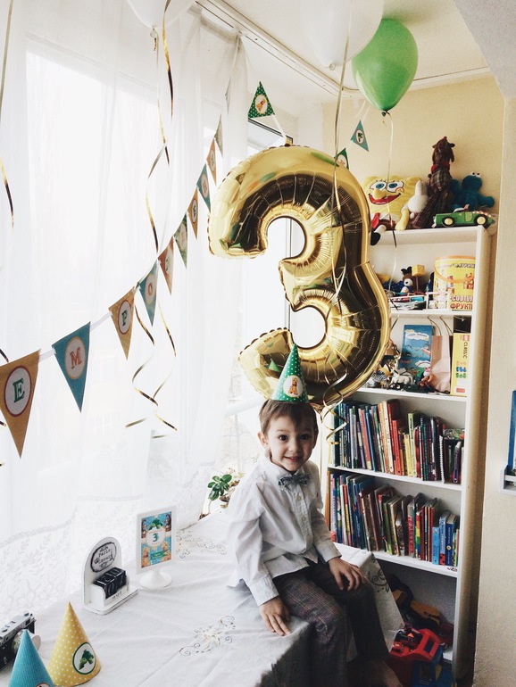 Вчера отметили Мишино трёхлетие) время очень быстро летит, до сих пор не верится! вот уже второй год подряд празднуем дома, и я этому рада. Получаю большое удовольствие от подготовки, сладкий стол был снова на мне, правда в этом году коржи на торт пекла свекровь, хоть немного меньше работы. Готовиться начала за 5 дней, сделала макет праздничного декора и распечатала, быстро заказала подарки, шарики. Все успела что хотела! Детей было трое, 2-е Мишиных ровесников, познакомились с мамами в инстаграме года 2 назад, с тех пор и общаемся и ещё были друзья семьи с сыном 5 лет. Было весело! Дети вместе открывали подарки, муж мой показывал им книги, играли детские песни на гитаре и пели, пускали мыльные пузыри, все по очереди задували свечи на торте. Конечно не обошлось без разлитого компота и размазанного крема, но это все мелочи, спасибо мужу что в течение праздника периодически убирал и вытирал))) потом были прыганья на кровати с шариками и просмотр мультиков. В итоге за 3 часа отпраздновали) Миша был на ногах с 6 утра до 8 вечера, позже всех ушли друзья с пятилетним мальчиком, Миша с ним отлично ладит и они общаются уже почти на равных, чему я очень рада. Подарков было оооочень много в этом году. В итоге: 11 новых книг (4 энциклопедии - про животных и про динозавров (мишины самые любимые темы последние месяцев 5-6), про природу, 3 книги на английском, тоже про животных смешные истории, очень классные! , 2 книги со сказками на украинском, 2 книги Остера из серии про Шурика, Пурика и Мурика, собираем их) 2 больших пазла Ларсен (у нас теперь их 6, Миша их обожает), набор Лего Дупло Арктика, Миша его очень ждал, новая шапка на весну, подставка большая для Лего Дупло, чёрный мерседес маленький, динозавр, жираф и пеликан Schleich - это прям хит, Миша снова полюбил этих зверюшек, ещё давно стали собирать, потом долго не было интереса, только машины, сейчас наоборот фанатеет от животных))) да и я фанат этой серии🙌🏻