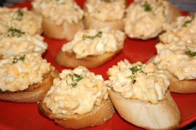 У нас красится много яиц (сам процесс соревнований по битью детей радует), а вот есть просто вареные яйца надоедаем всем, так вот, вопрос собственно в чем, какие у вас есть любимые салаты и закуски для утилизации вареных яиц?