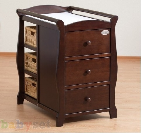 Пеленальный комод Giovanni Belcanto Lux это отличное решение вопроса экономии места в небольших спальнях. При ширине всего в 55 сантиметров комод очень устойчивый, вместительный, прочный и при этом компактный. Он сделан из массива качественной новозеландской сосны. Пеленальный столик по краям огорожен бортиками, а матрасик, входящий в комплект изготовлен из особого непромокаемого материала. Комод снабжен тремя выдвижными и весьма вместительными, при своих размерах, ящиками. Кроме ящичков имеется также три открытые полочки, на которых можно разместить все необходимые вещи. Комод имеет очень стильный дизайн. Если со столика убрать матрасик, то пеленальный комод превратится в обычный, который может быть использован для хранения игрушек и даже книжек.