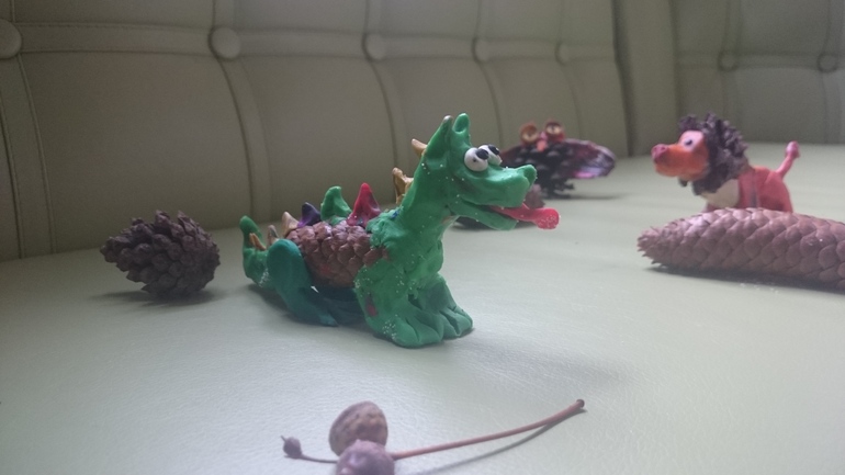 Сентябрь дождливый и холодный....брррр... Набрали шишек, жёлудей и теперь фантазируем с Сашкой. Как вам наши зверюшки?