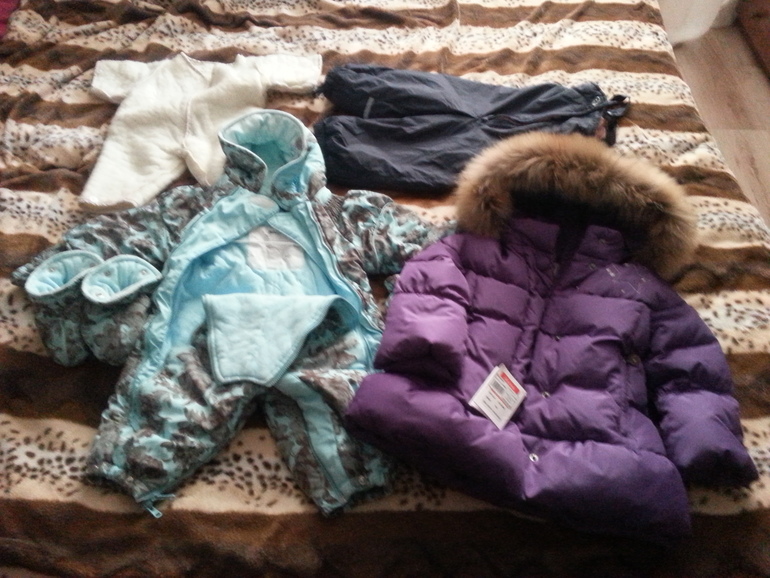 Пуховик Aviva насышенного фиолетового цвета. НОВЫЙ! Размер 2А. С большой натуральной опушкой. 4000 Комбинезон-трансформер pilguni с подстежкой из натуральной овчины. Стразы Сваровски горят, все на месте, состояние нового. Размер 74. Можно носить весна-зима-осень с нуля до 80 размера. Вещь шикарная. 2300 Полукомбинезон kerry зимний в идеале. Цена 1300 Королев, Москва по договоренности