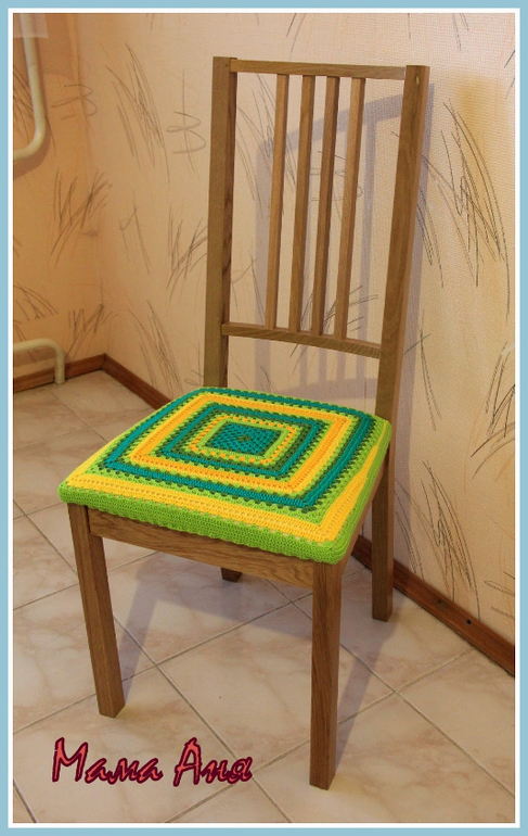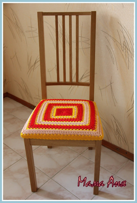 Чехлы на стулья появлялись из необходимости, поэтому после того как связался первый, никакого названия ему не давалось. Делать их одинаковыми не хотелось, поэтому второй было решено связать контрастной расцветки. А по окончанию работы название само собой напросилось :)
