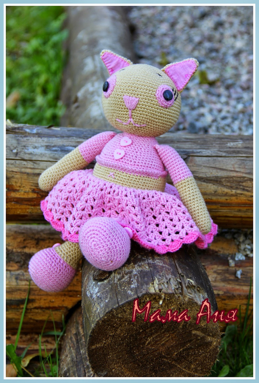 "Мамочка, дай кису!" - сказала мне младшая дочка, увидев фото кошечки от Дианы Диановой. Так уж сложилось, что у моего младшего ребёнка нет такой игрушки, чтобы с ней и спать, и кушать, и прогуляться захотелось. Ну нет пока ещё у неё любимой игрушки, а тут такая просьба. Может быть поэтому Карамелька вязалась легко и на одном дыхании.